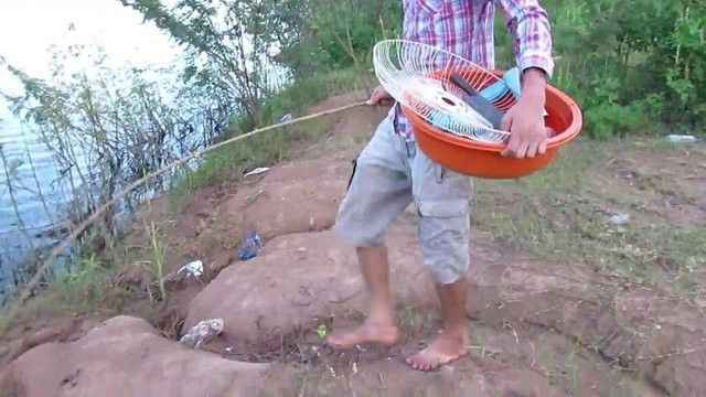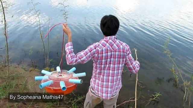 Youtube'da açtığı kanalda, sıra dışı yöntemlerle avladığı hayvanları kameraya kaydeden Sopheana Mathis adındaki genç, bu kez vantilatör teli ve leğen kullanarak kısa sürede bir sürü balık yakaladı.