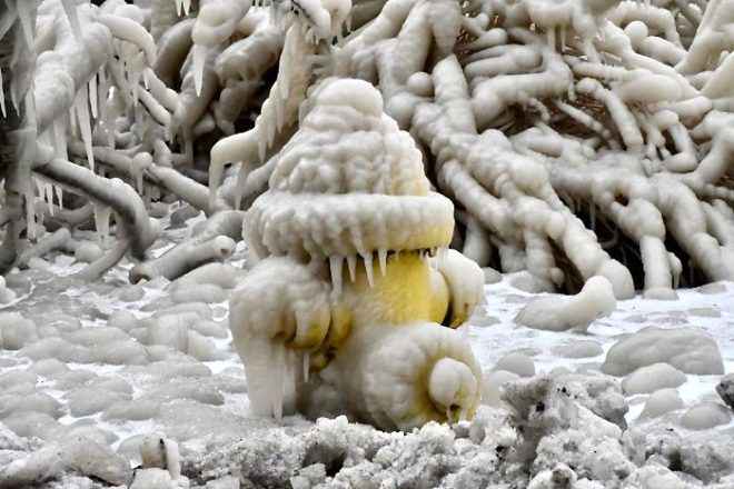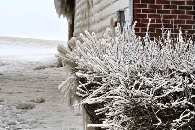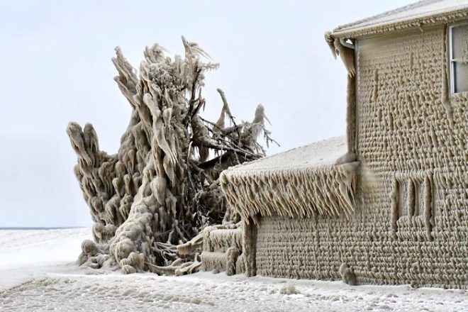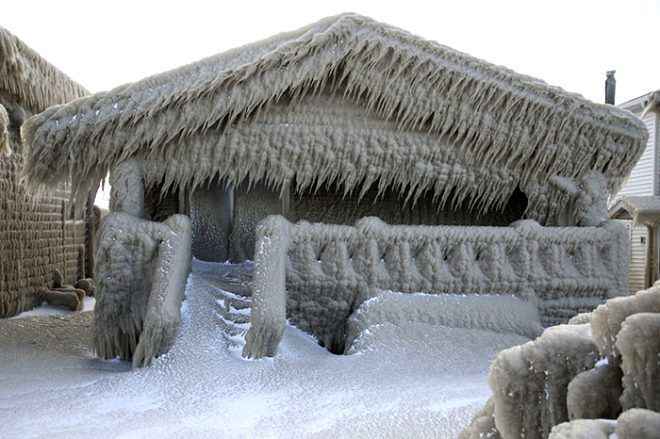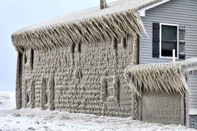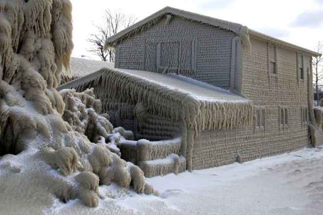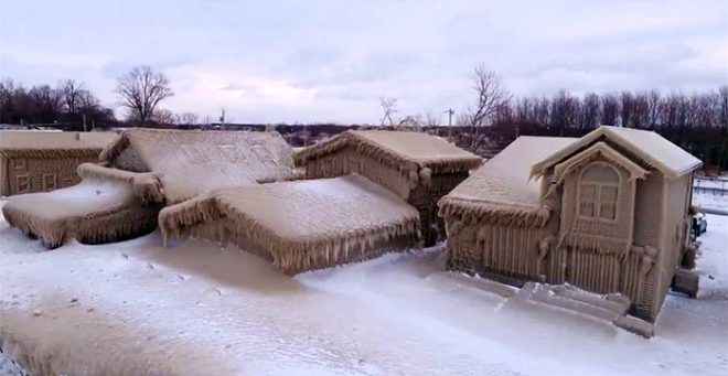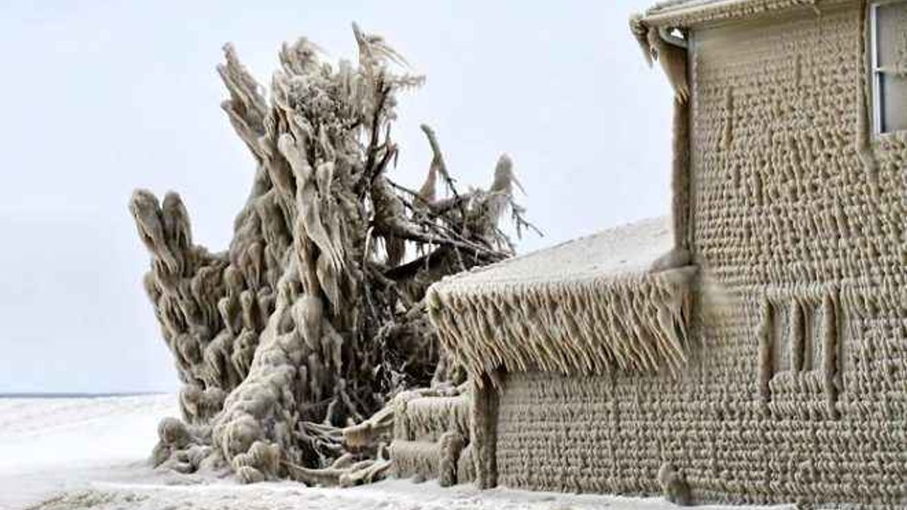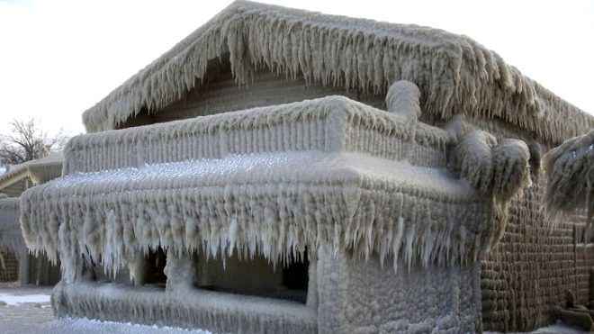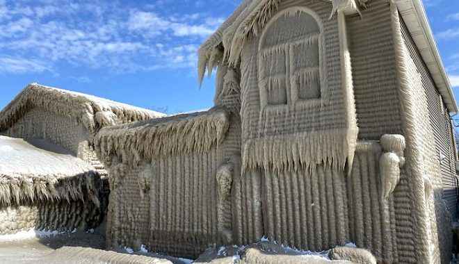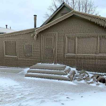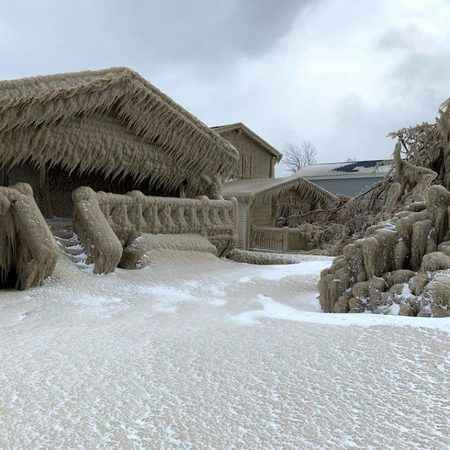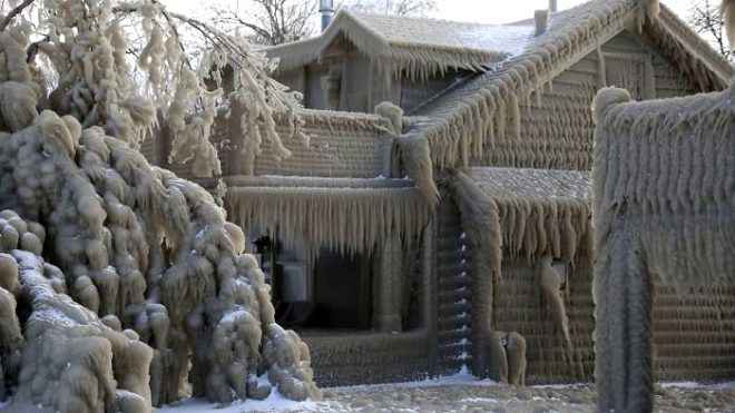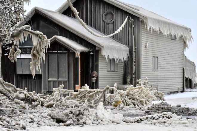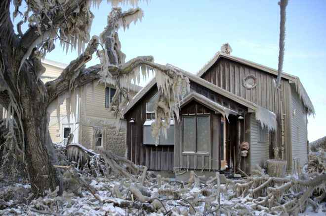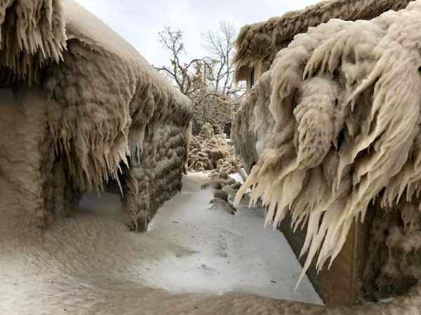 Görüntü ne kadar masalsı dursa da bölgedeki evlerin etrafı yaklaşık 30 santimetre ile 2 metre arasında değişen kalınlıktaki buz tabakasıyla kaplandı.