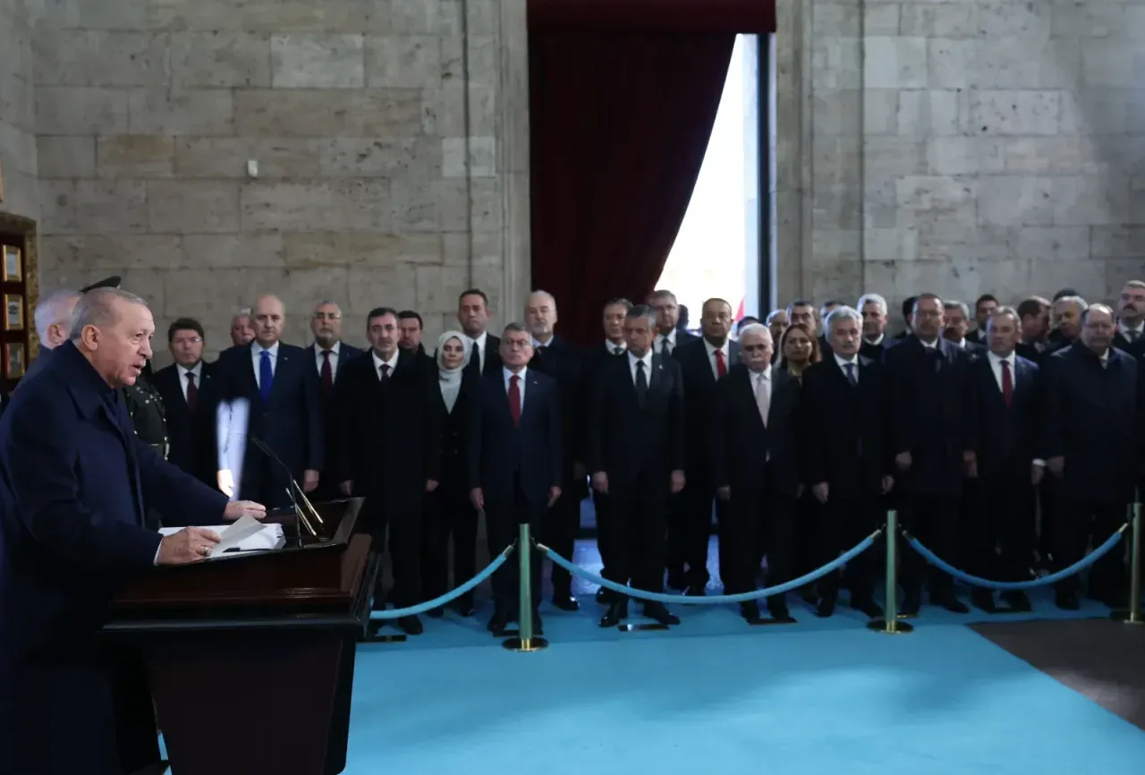 Cumhurbaşkanı Recep Tayyip Erdoğan başkanlığındaki kortejde TBMM Başkanı Numan Kurtulmuş, Cumhurbaşkanlığı Kabinesi üyeleri, CHP Genel Başkanı Özgür Özel, MHP Genel Başkanı Devlet Bahçeli, İYİ Parti Genel Başkanı Müsavat Dervişoğlu, yüksek yargı organlarının başkanları, TSK komuta kademesi, siyasi parti temsilcileri, bürokratlar ve diğer devlet erkanı yer aldı.