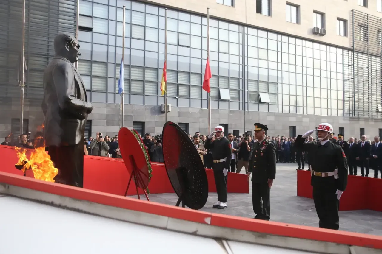 Kahramanmaraş'ta İl Emniyet Müdürlüğü bahçesinde düzenlenen törende Vali Mükerrem Ünlüer, Büyükşehir Belediye Başkanı Fırat Görgel, Fırat Kalkanı ve Zeytin Dalı Harekat Bölgesi Komutanı Tümgeneral Ahmet Gülmüş, Atatürk Anıtı'na çelenk sundu.