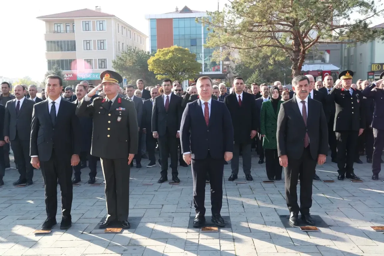 Kayseri'de Cumhuriyet Meydanı'ndaki törende, Vali Gökmen Çiçek, Garnizon Komutanı Tümgeneral Kadircan Kottaş ve Büyükşehir Belediye Başkanı Memduh Büyükkılıç, Atatürk Anıtı'na çelenk bıraktı. Saat 09.05'te sirenlerin çalmasıyla saygı duruşunda bulunuldu.
