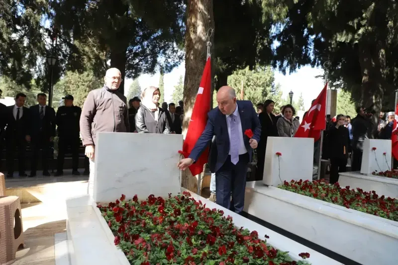Daha sonra protokol üyeleri şehit mezarlarına karanfil bıraktı.