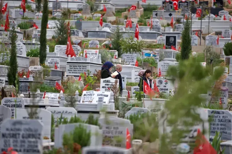 6 Şubat 2023'teki Kahramanmaraş merkezli depremlerden etkilenen Osmaniye'deki mezarlıklarda, aileler afette kaybettikleri yakınlarının kabirlerini Ramazan Bayramı arifesinde ziyaret etti.