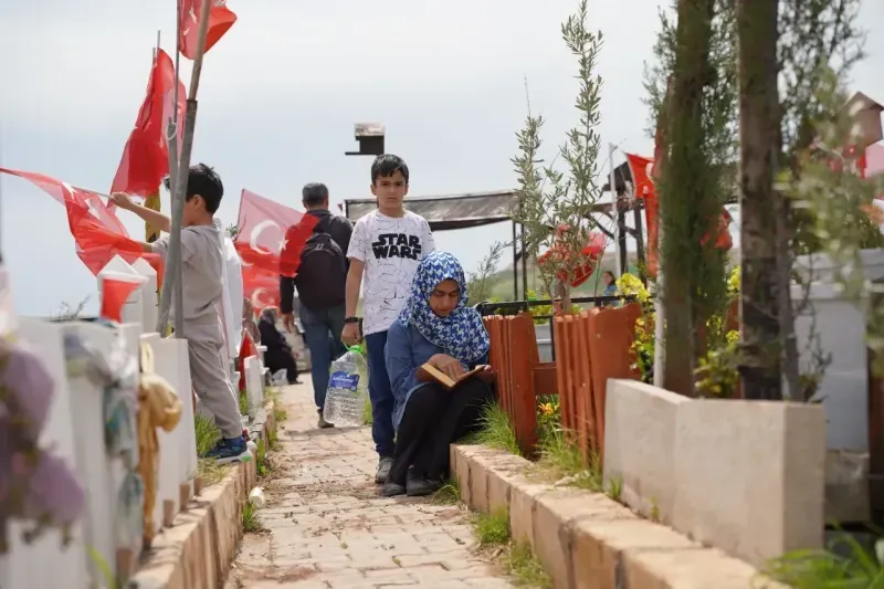 Aileler, kabirlerin başında Kur'an okuyup dua etti.