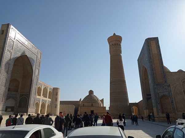 İslam şehri Buhara’nın en gösterişli mimarisi ise Kalon minaresi. Karahanlı sultanı Muhammed Arslan Han tarafından 1127 yılında inşa ettirilen minare 48 metre yüksekliğindeki ihtişamıyla şehre yukardan manevi bir atmosfer sunuyor. 105 basamağı olan minare farklı desen ve şekilleriyle de 13 kuşaktan medeniyetin izlerini taşıyor.