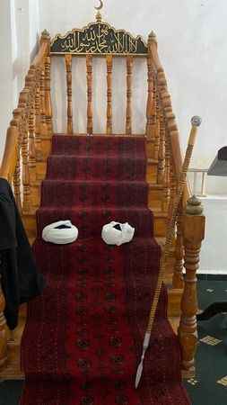 Tarih Kalon Camii’nin avlusunun büyüklüğü dışında eğitim verilen ve namaz kılınan bölümleri de gayet büyük. Camii de en dikkat çeken nokta ise menberi. 7 basamaktan oluşan tarihi minberin kenarında ise bir savaş aleti olan mızrak dikkat çekiyor. Yetkililer, Cuma namazında namaz kıldıran imamın Cuma Hutbesi’ne çıkarken hemen minberin yanında duran mızrakla çıktığını ve hutbeyi bu mızrak ile okuduğunu aktardı.