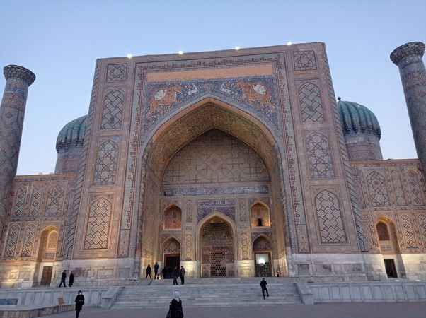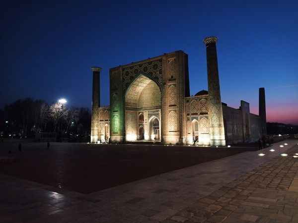 Uluğ Bey Medresesi 1417 yılında inşa edilmiş. Bu medresede yüzyıllarca felsefe, astronomi, matematik eğitimi verilmiş. Medresenin ana kapısında işlenen yıldız motifleri astronomiyi sembolize ediyor.