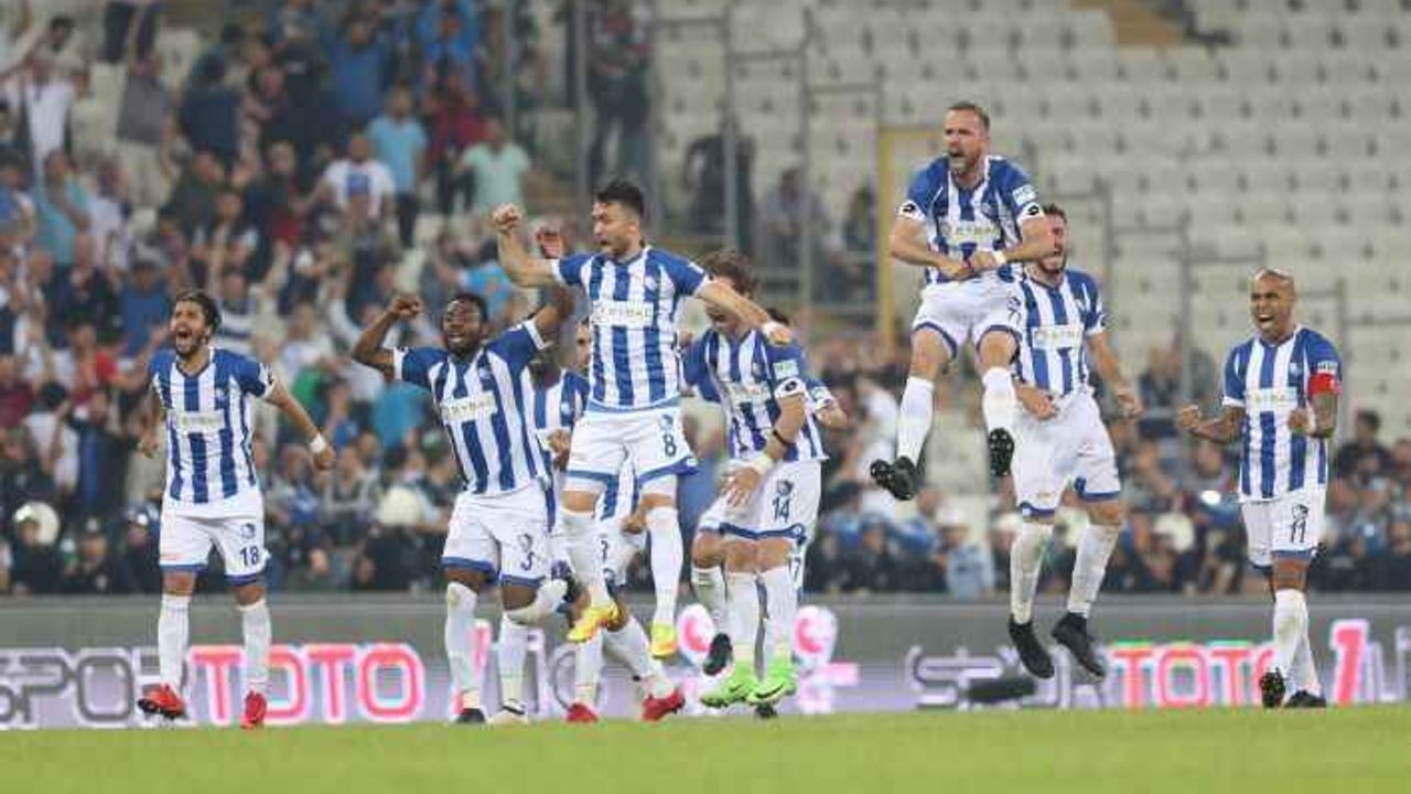 Büyükşehir Belediye Erzurumspor, Bursa Büyükşehir Belediye Stadı'nda Spor Toto 1. Lig Play-Off finalinde Gazişehir Gaziantep takımını penaltı atışlarıyla yenerek gelecek sezon Spor Toto Süper Lig'de mücadele etme hakkı elde etti. Penaltı atışları sonrası futbolcular ve teknik heyet sevinç yaşadı.
