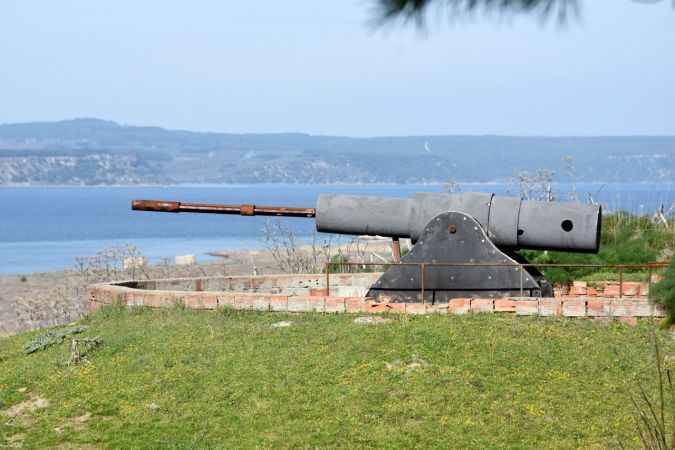 Orhaniye Tabyası’nda şu anda 2 gerçek top bulunduğunu ve 3'üncüsünün ise Çanakkale merkezindeki Cumhuriyet Meydanı’nda sergilendiğini belirten Atabay, “Burada bulunan diğer toplar ise film çekimleri için kullanılan taklit toplardır.