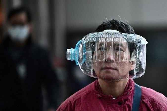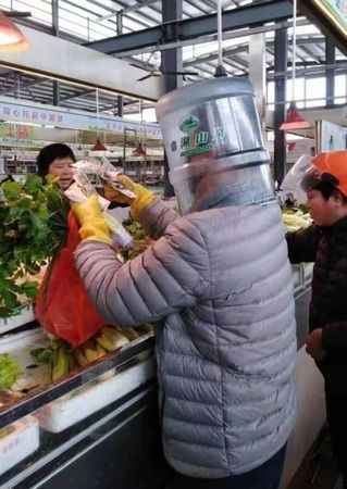 Maske bulamayan bir Çinli damacana ile alışverişe çıkmayı tercih etmiş.