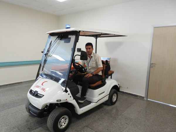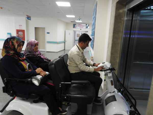 Çorum’da bulunan Erol Olçok Eğitim ve Araştırma Hastanesi'nde yürüme zorluğu çeken hasta ve engellilere, hastane içinde özel araç ve refakatçi personelle ücretsiz hizmet sağlanıyor. Hastanede 5 adet tek kişilik akülü araç, 1mini ambulans,4 kişilik 2 golf aracı vesedyeli golf aracı ile hastalara hastane içerisinde ulaşım hizmeti veriliyor. Hasta yönlendirme görevlisi Sibel Külcü, hastane içerisinde gün boyunca yaşlı ve engelli hastalara ulaşım hizmeti verdiklerini belirterek, "Hastaları kapıda karşılıyoruz ve tedavileri süresince golf araçlarla eşlik ediyoruz. Hastane içerisinde gidecekleri yerlere taşıyoruz” dedi.