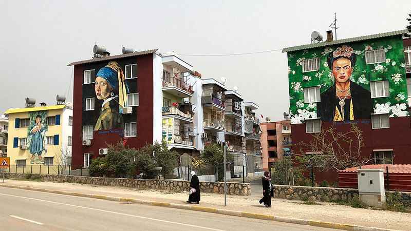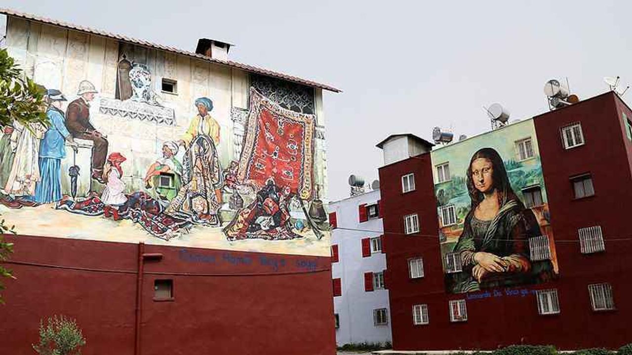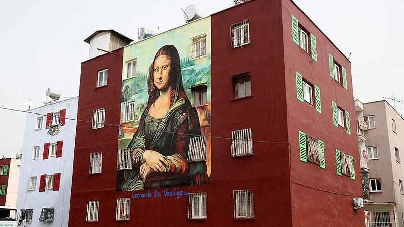 Ressam Nazife Bilgin Hazar, Mersin'de Toroslar Belediyesinin başlattığı proje kapsamında bir bulvardaki binanın duvarına Leonardo Da Vinci'nin 'Mona Lisa'' adlı eserini çizdi.