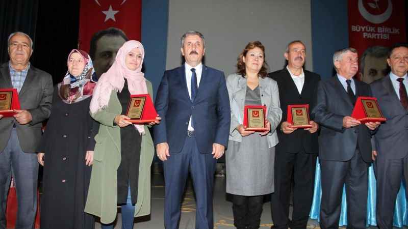 BBP Lideri Destici, konuşmasının ardından partiye yeni katılan 35 kişiye parti rozeti taktı.Partiye emeği geçenlere plaket verenDestici, plaket töreni sonrası karayoluyla Kocaeli 'ye gitti.