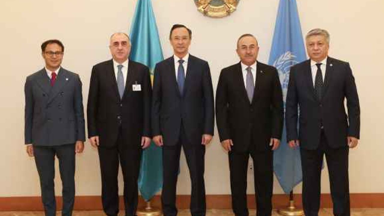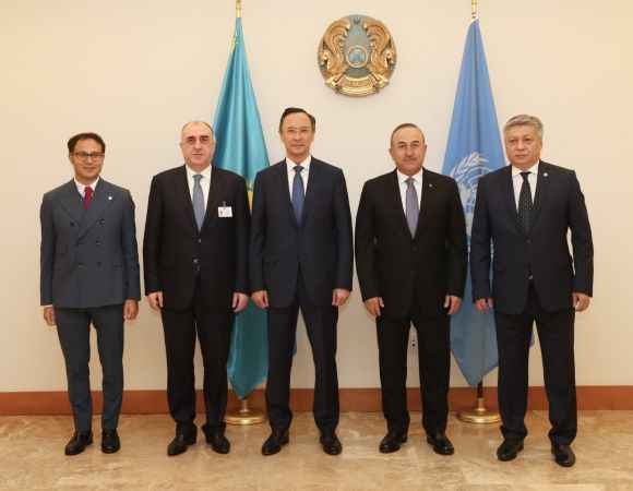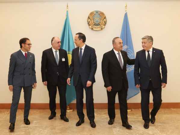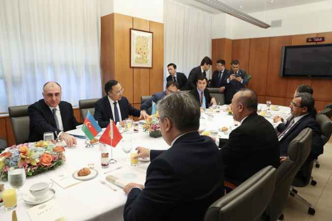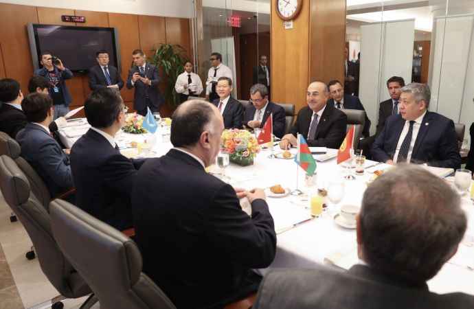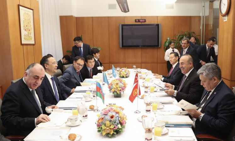 Dışişleri Bakanı Mevlüt Çavuşoğlu (sağ 2), Birleşmiş Milletler (BM) 72. Genel Kuruluna katılmak üzere geldiği New York'ta, Kazakistan’ın ev sahipliğinde düzenlenen Türk Konseyi Dışişleri Bakanları toplantısına katıldı. Toplantıya Türk Konseyi Genel Sekreteri Ramil Hasanov (solda), Azerbaycan Dışişleri Bakanı Elmar Mammadyarov (sol 2), Kazakistan Dışişleri Bakanı Kairat Abdrakhmanov (sol 3) ve Kırgızistan Dışişleri Bakanı Erlan Abdyldayev (sağda) de katıldı.