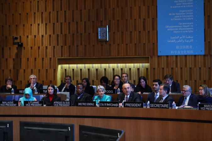 Dışişleri Bakanı Mevlüt Çavuşoğlu çeşitli temaslarda bulunmak üzere geldiği Paris ’te UNESCO 202. Yürütme Kurulu Özel Oturumu’na katıldı.