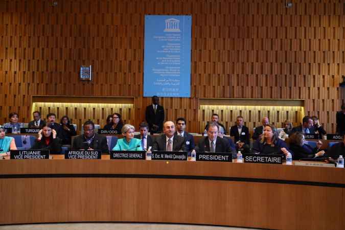 Dışişleri Bakanı Mevlüt Çavuşoğlu çeşitli temaslarda bulunmak üzere geldiği Paris’te UNESCO 202. Yürütme Kurulu Özel Oturumu’na katıldı.