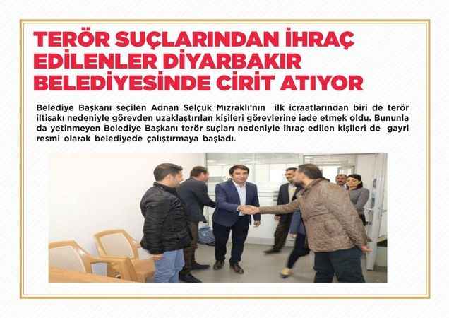 İçişleri Bakanlığı’nca Diyarbakır Büyükşehir Belediye Başkanı Adnan Selçuk Mızraklı, Van Büyükşehir Belediye Başkanı Bedia Özgökçe Ertan ve Mardin Büyükşehir Belediye Başkanı Ahmet Türk görevden uzaklaştırıldı.