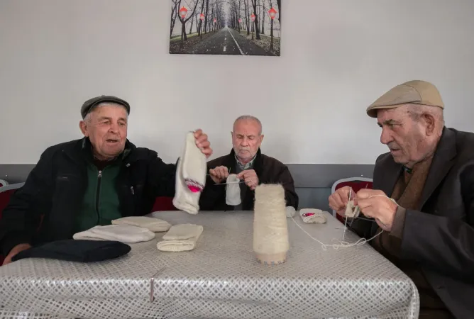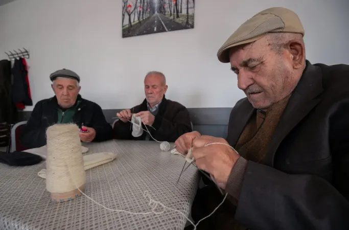 Bursa’nın Karacabey ilçesine bağlı Yenikaraağaç Mahallesi’nde yaşayan bazı erkekler, kuşaktan kuşağa aktarılan ‘’Drama çorabı’’ örme geleneğini kahvehanelerde bir araya gelerek sürdürüyor.