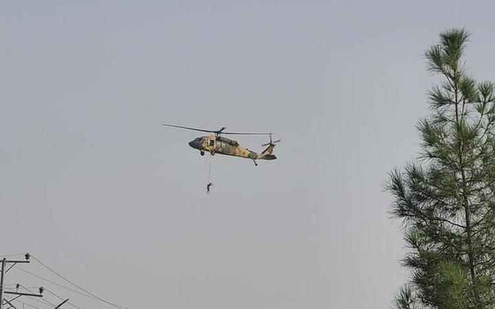 Helikoptere halatla bağlanan insan ise dikkat çekti.