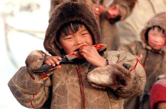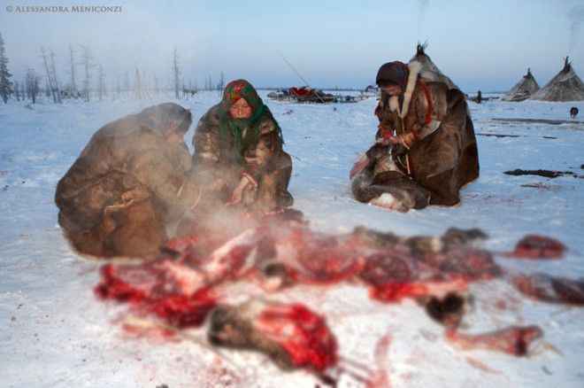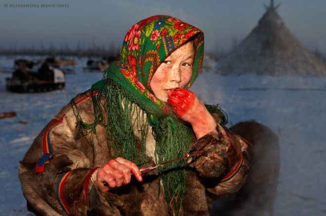 Onların en büyük özelliği eti çiğ çiğ yemeleri. Dondurucu soğukta yaşayan Nenetsler, modern yaşamı reddediyor.