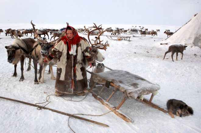 Nenetsler geleneksel olarak ren geyiği bakıcılığını yapan göçebe bir halk.