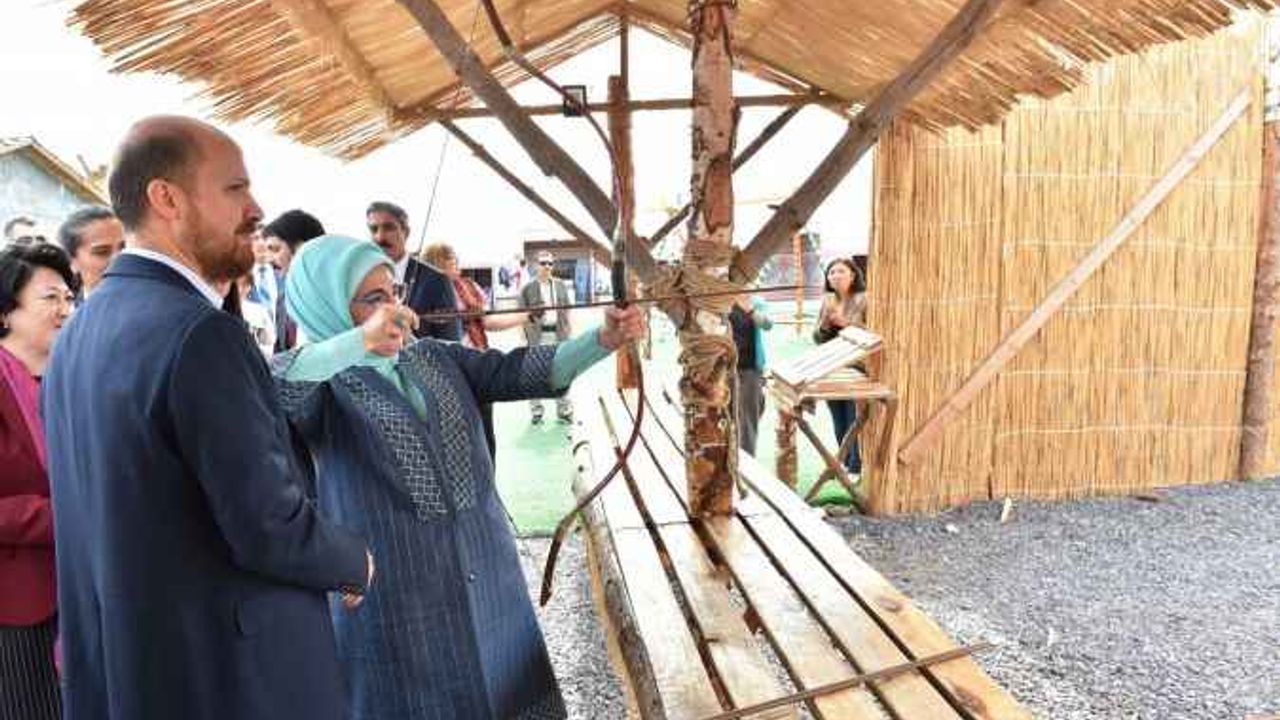 CumhurbaşkanıRecep Tayyip Erdoğan'ınKazakistanseyahatine eşlik eden eşiEmine Erdoğanve oğluBilal Erdoğan, Kazakistan’da Astana EXPO 2017 Uluslararası Enerji Fuarı çerçevesinde Kazak halkının kültür ve geleneklerini sergileyen etnik köyü ziyaret ederek burada ok attı.