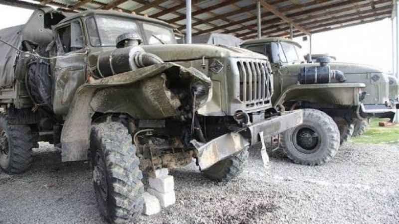 Ural markalı kamyonların çoğu çalışır durumda fakat araçlarda çatışmaların izleri görülüyor.