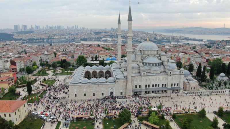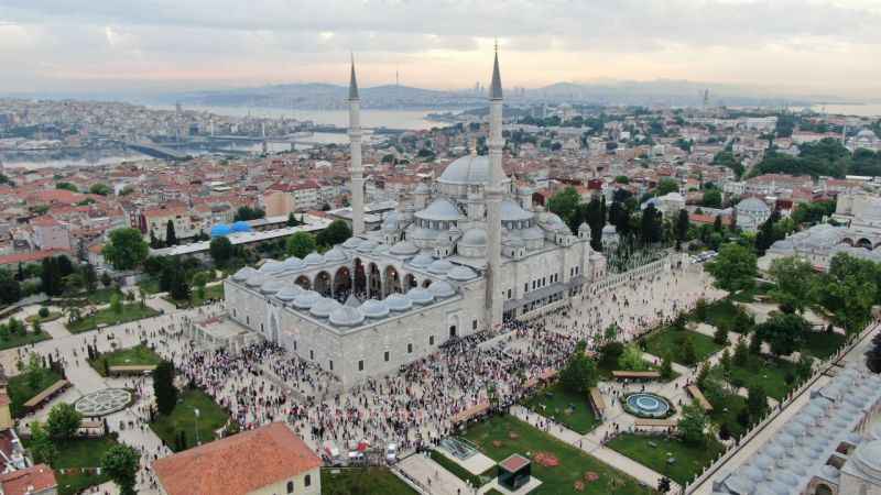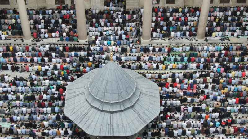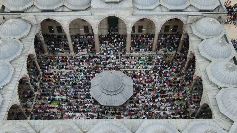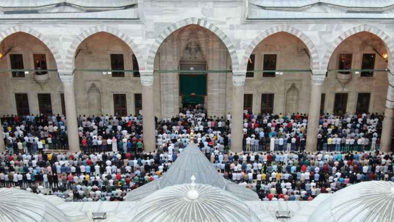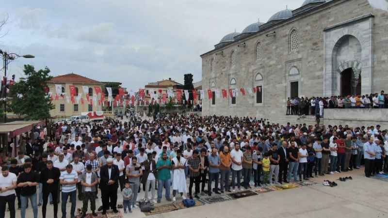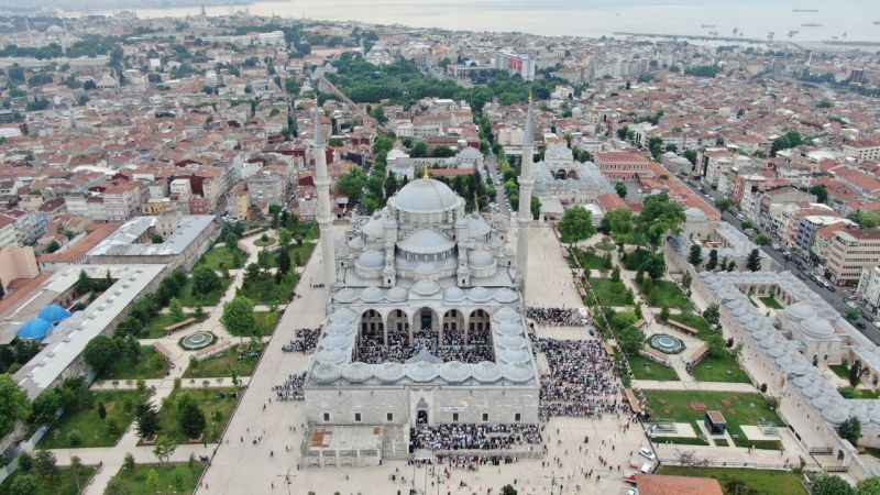 Fatih Camii, Bayram namazını eda etmek için gelen binlerce İstanbulluyla doldu. Camide yer bulmak isteyenler namaz saatinden çok önce Fatih Camii'ni doldururken, içerde yer bulamayanlar namazı avluda ve bahçede kıldı. Avludaki ve cami çevresindeki kalabalık havadan görüntülendi.