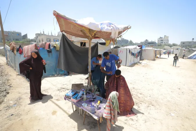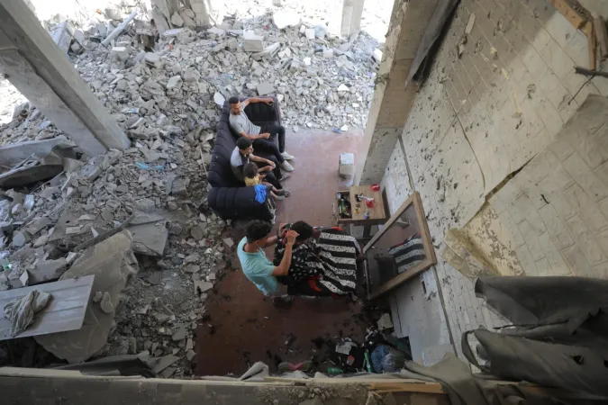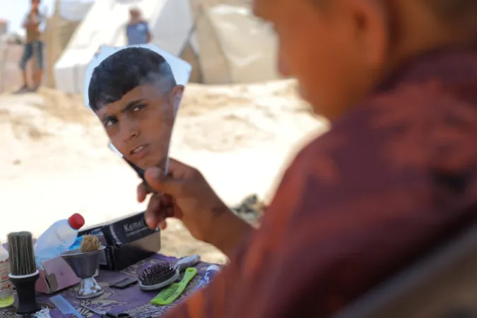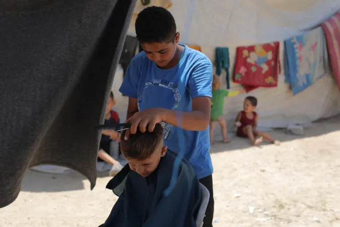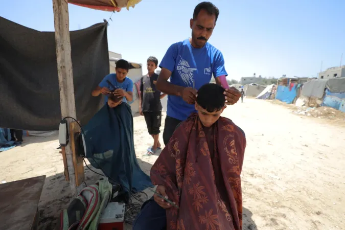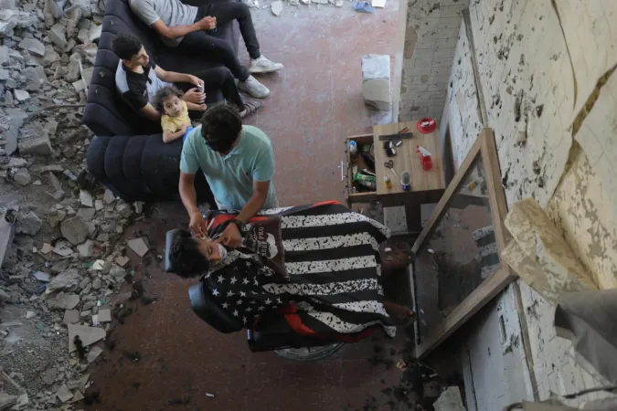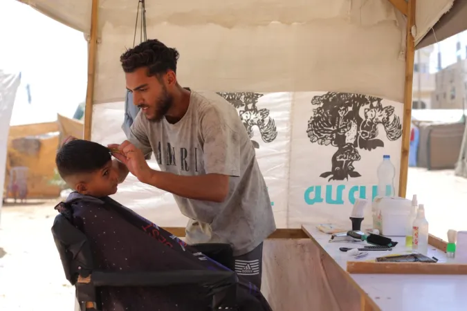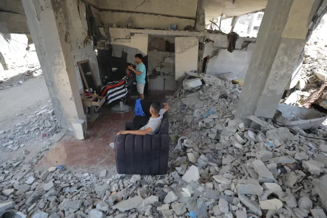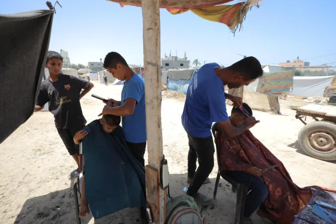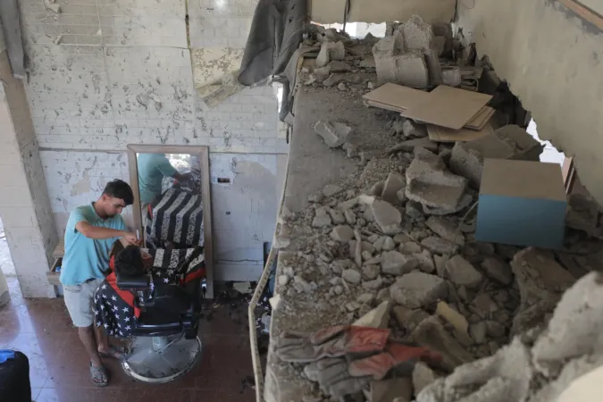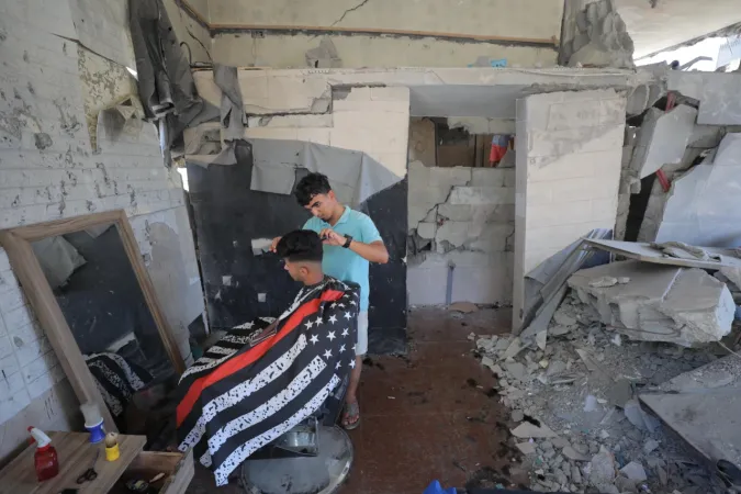 İsrail ordusunun Gazze'nin ortasında bulunan Bureyc Mülteci Kampı'na düzenlediği saldırılarda, 24 yaşındaki Filistinli Abdullah Ramadan'ın berber dükkânı kullanılamaz hale geldi. Ancak Ramadan, geçimini sürdürebilmek için yıkılan binaların enkazları arasında mesleğini icra etmeye devam ediyor.