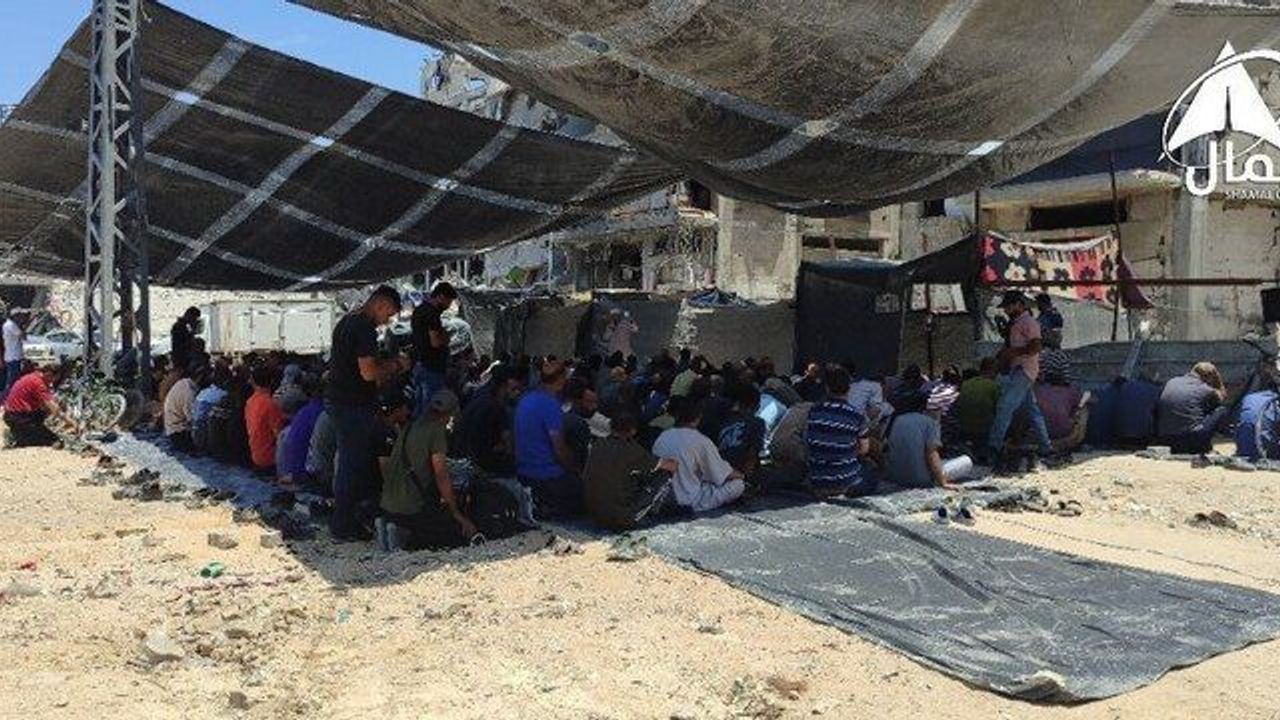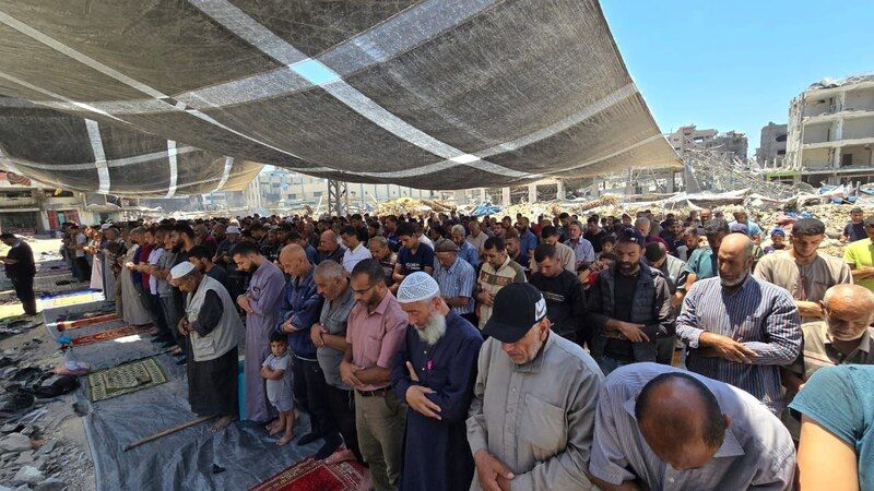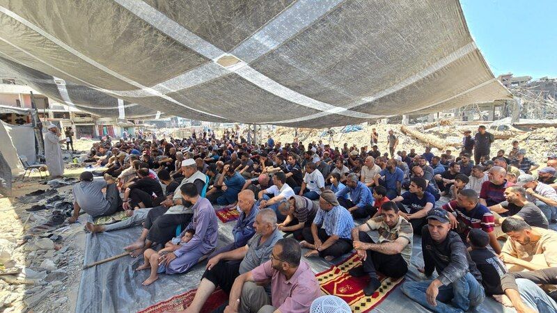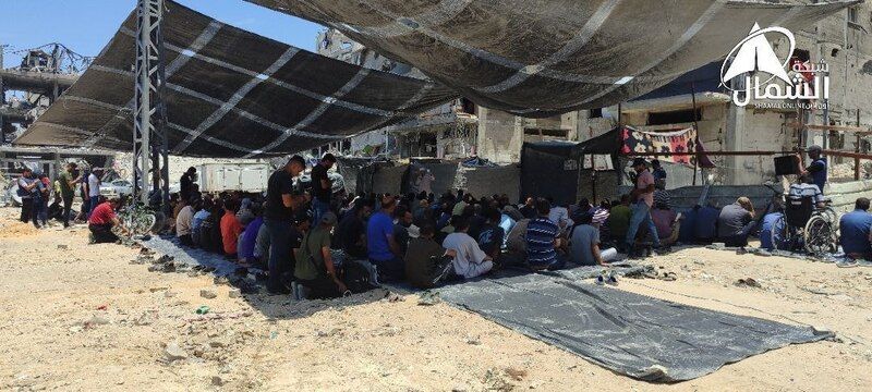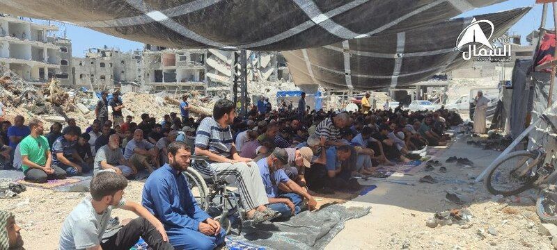 Son dönemdeki Siyonist saldırılar sonucunda Gazze Şeridi'nin kuzeyindeki Cebeliye kampının uğradığı büyük yıkıma rağmen, Cuma Namazı Zilhicce'nin ilk gününde böyle kılındı..