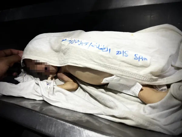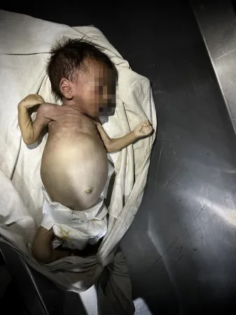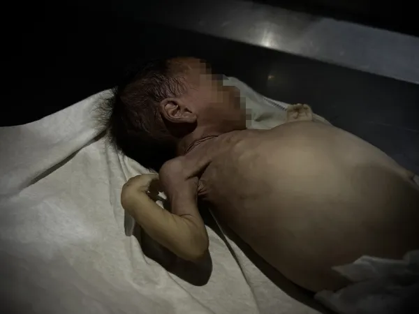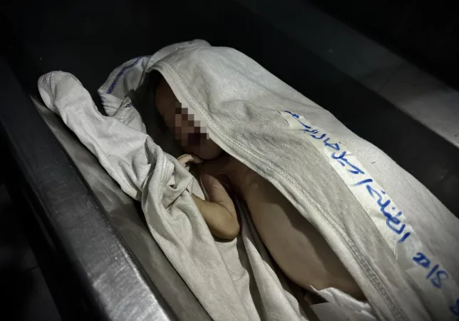İsrail'in yoğun kuşatma ve kısıtlamalarla temel gıda erişimini engellediği Gazze Şeridi'nde, 2 aylık Rasil Ebu Mesud isimli bebek, yetersiz beslenme nedeniyle hayatını kaybetti. Mesud'un naaşı, cenaze işlemleri için Han Yunus kentinde bulunan Nasır Hastanesi'ne getirildi.