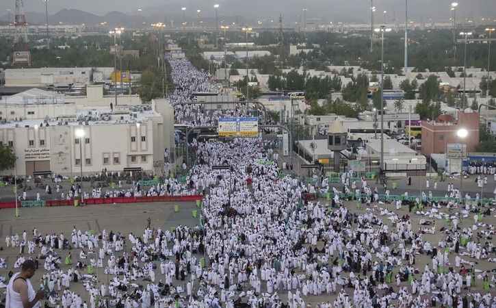 Hacı olabilmek için saatleri sayan Müslümanlar, vakfe için Arafat'ta bulunuyor.
