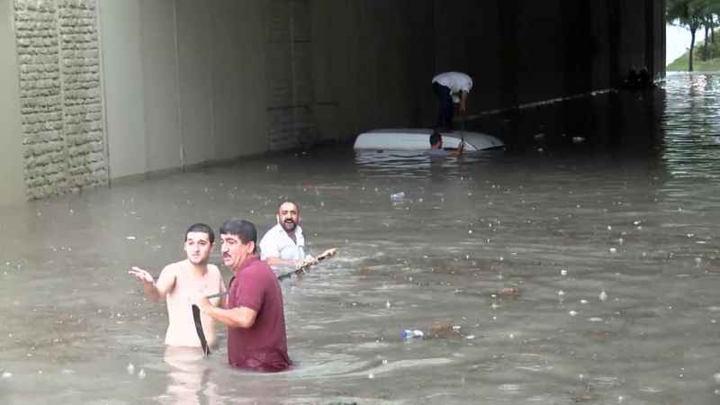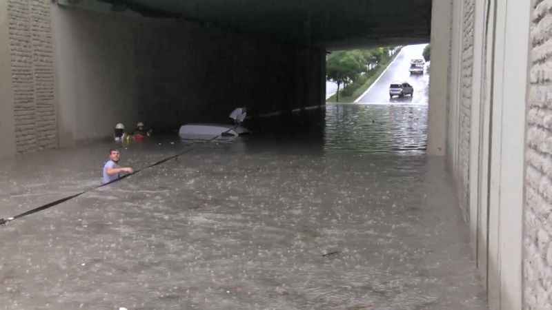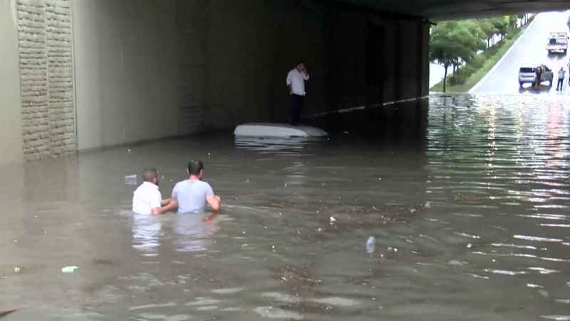 İstanbul'da öğle saatlerinde bastıran şiddetli yağmur, Hadımköy'de alt geçidin suyla dolmasına neden oldu.