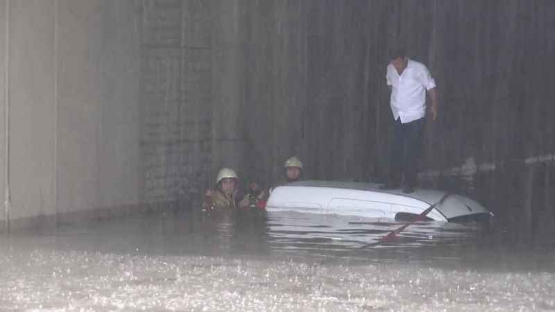 HADIMKÖY'de su basan alt geçitte araçlar mahsur kaldı. Bazı sürücüler araçlarının üzerine çıkarak kurtarılmayı bekledi. İtfaiye ekiplerinin kurtarma çalışmaları devam ediyor.