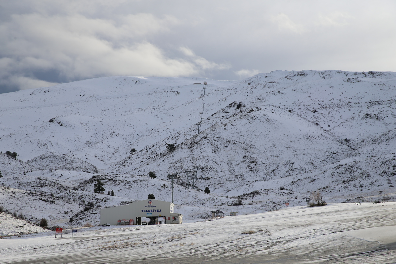 Mevsimin ilk karının yağdığı Denizli Kayak Merkezi beyaza büründü.
