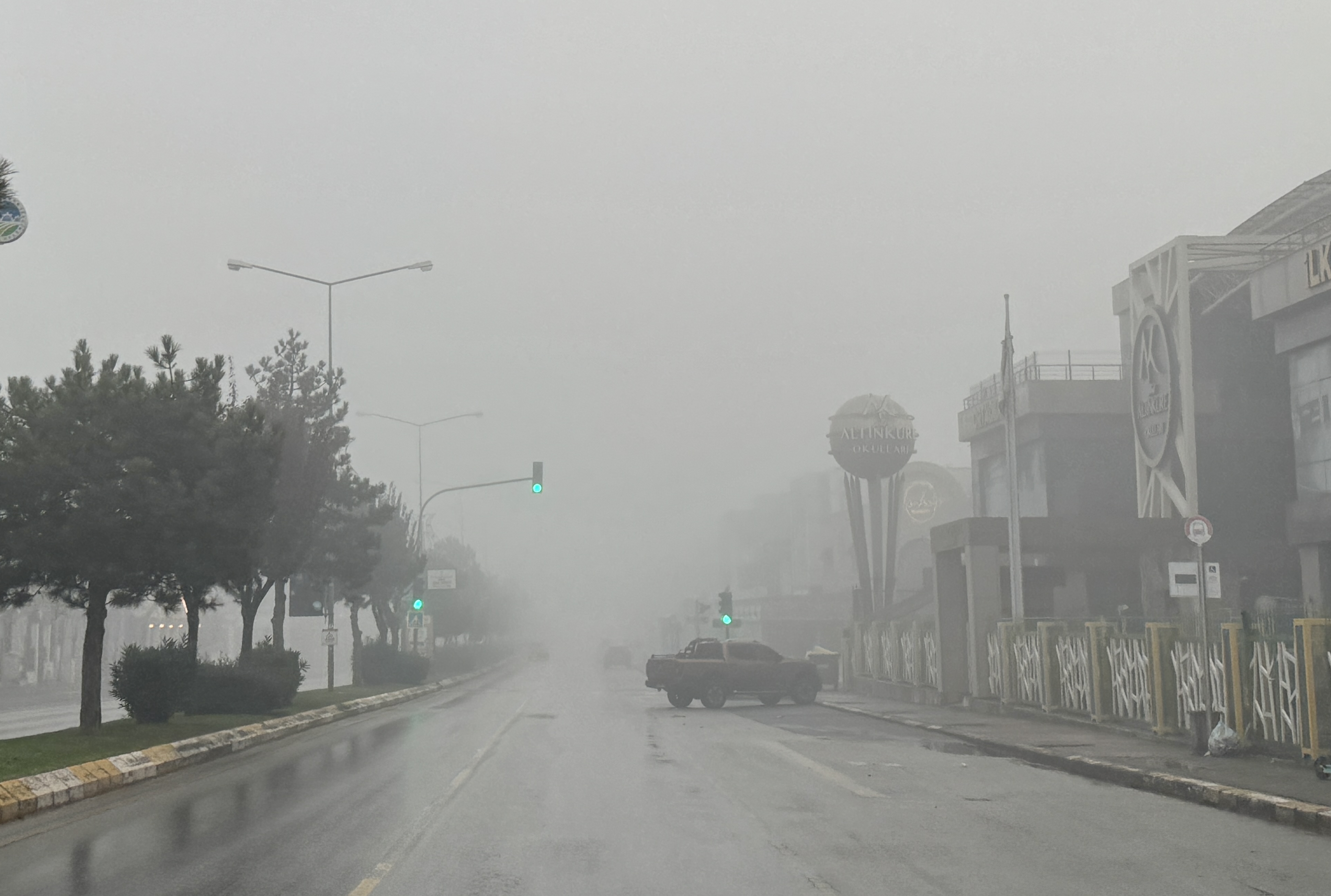 Kentte sabah saatlerinde etkisini artıran sis sebebiyle görüş mesafesi yer yer 50 metreye kadar düştü.