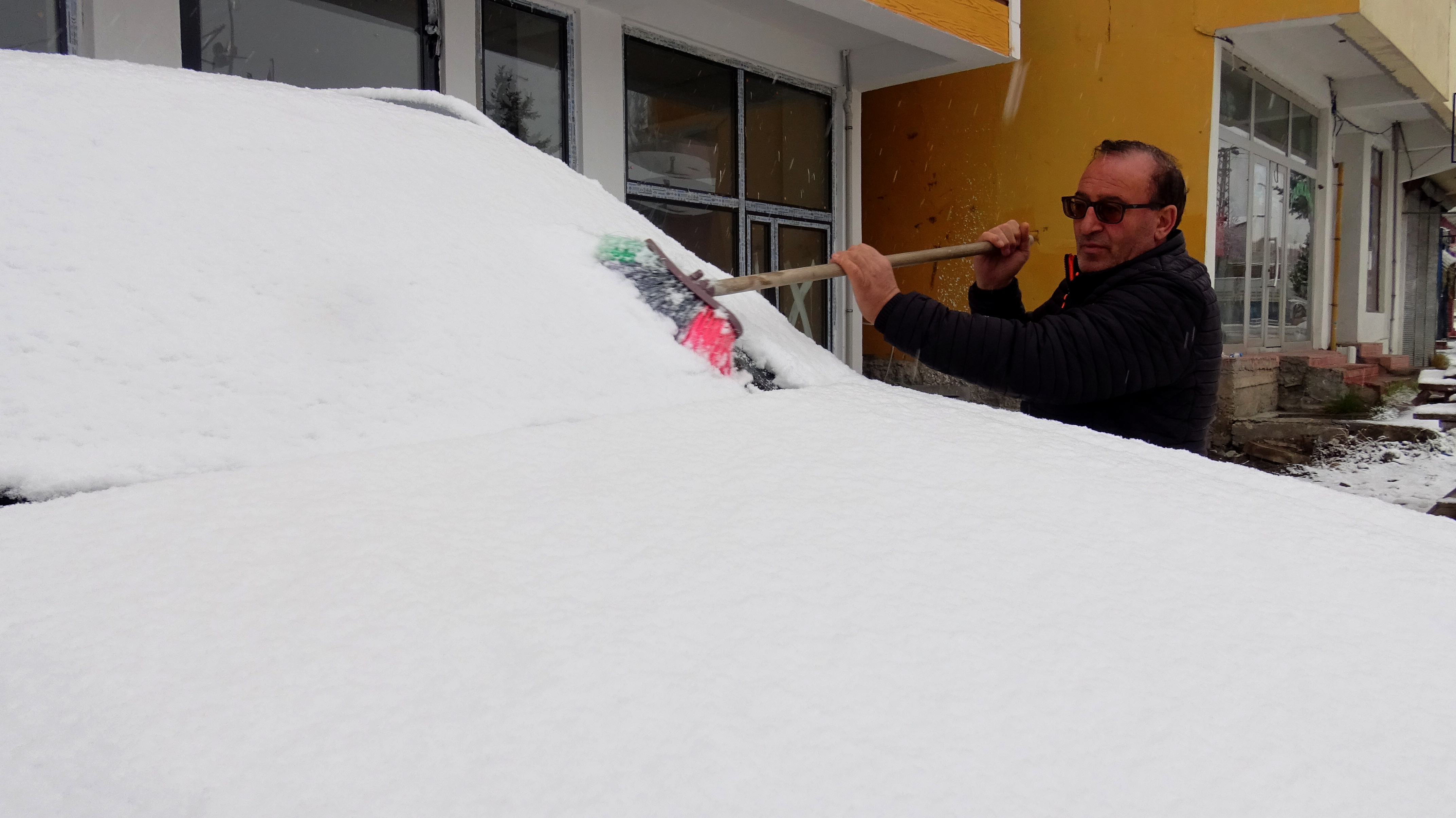 Kars'ta gece saatlerinde bağlayan sağanak yerini kar yağışına bıraktı.