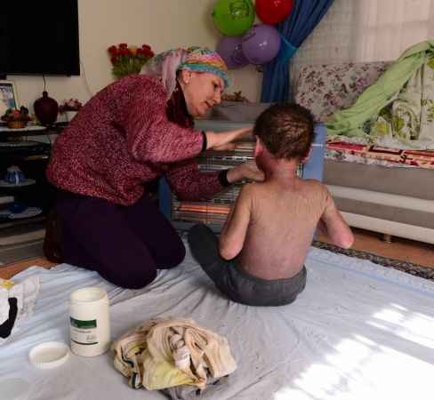Hastalığı nedeniyle artık okula da gidemeyen oğlunun, hiç durmadan kaşındığını belirten anne Çiftçi, "Oğlum, kaşınmaktan her yerini kanatıyor; geceleri 'Ölmek istiyorum' diye ağlıyor. Krem, ilaç hiçbir şey fayda etmiyor. Kaşıntı için sadece bir merhem kullanıyoruz.