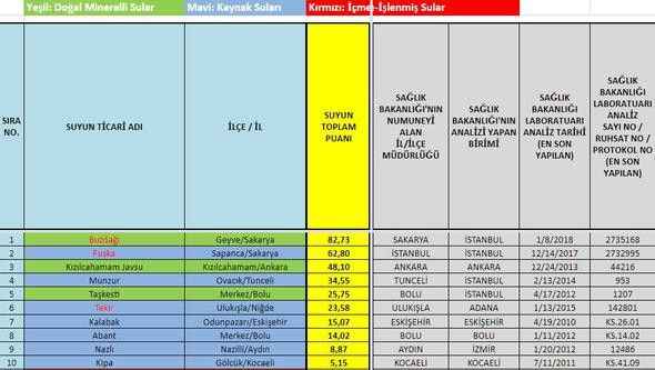 Su Raporunda su markası, kaynağın bulunduğu şehir, suda asla olmaması gereken biyolojik, kimyasal, radyolojik değerler ile su da mutlaka olması beklenen mineral değerleri ve suyun PH'ını gösteren bölümlerden oluşuyor. Kırmızı renkli bölüm, su da asla olması istenmeyen tehlikeli maddelerin nispetlerini gösterirken, yeşil bölüm ise mineral ve PH değerlerini gösteriyor.