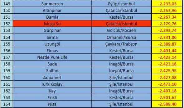 Bir su markasının 100 tam puan alabilmesi için PH düzeyinin 7-8,5 aralığında olması, suda biyolojik, kimyasal, radyolojik hiçbir kirleticinin olmaması ve mineraller ise belirlenen aralık değerlerinde olması gerekiyor. Bir marka en yüksek 100 puan alabilirken, eksi 25 bin değere kadar da gerileyebiliyor. Sabit değer sıfır (0) kabul edilirken, mineraller ve PH, suyun değerini artırıyor. Kirleticiler eksi puan almasına yol açtığı için suyun değerini düşürüyor.