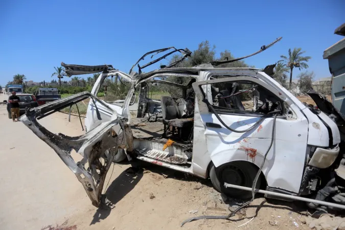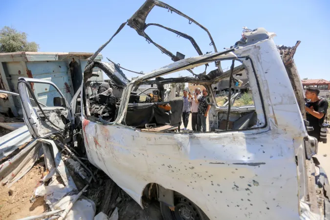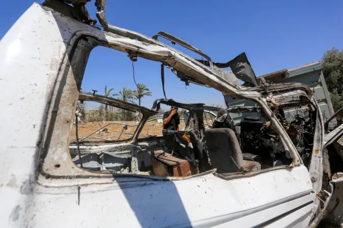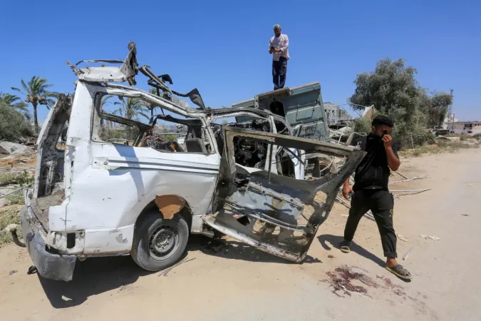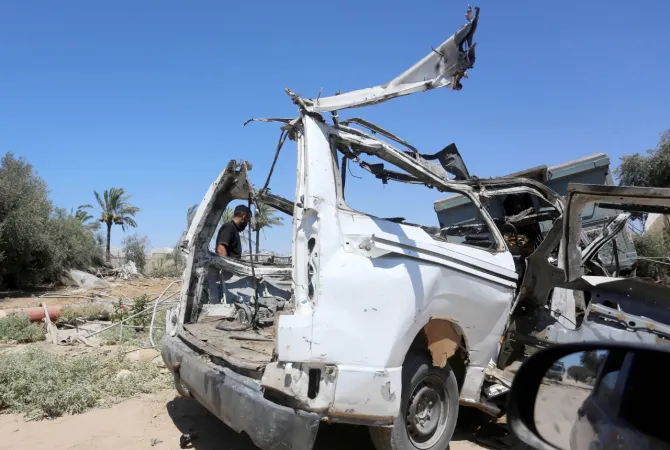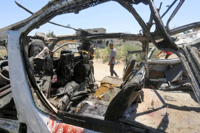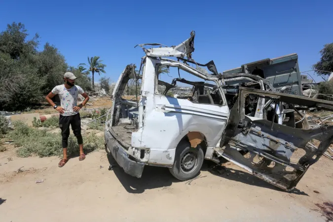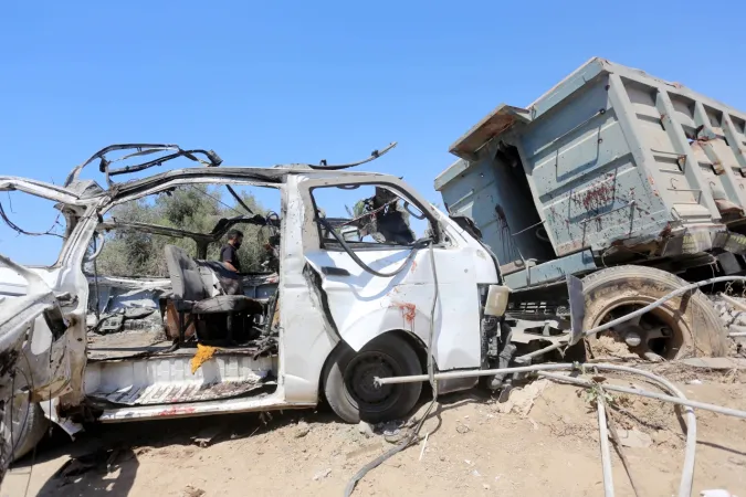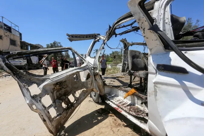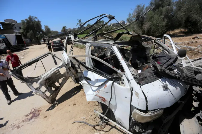 İsrail'in Gazze Şeridi'nin orta kesimindeki Ez-Zevayide beldesinde bir aracı hedef alması sonucu ölü ve yaralıların olduğu bildirildi. Bölgedeki Filistinliler, hurdaya dönen aracı inceledi.
