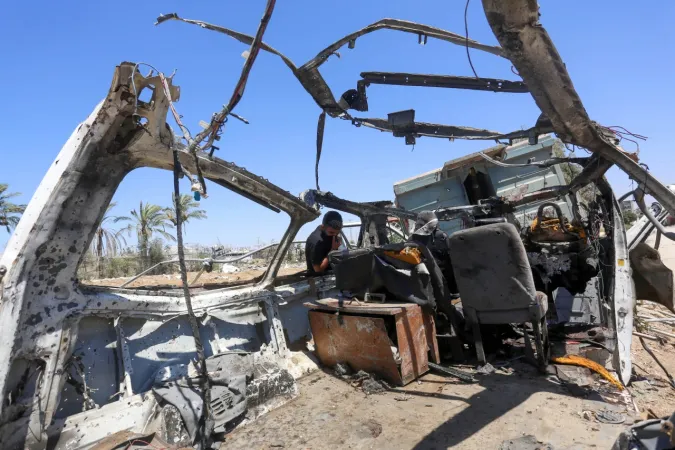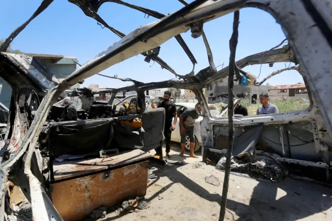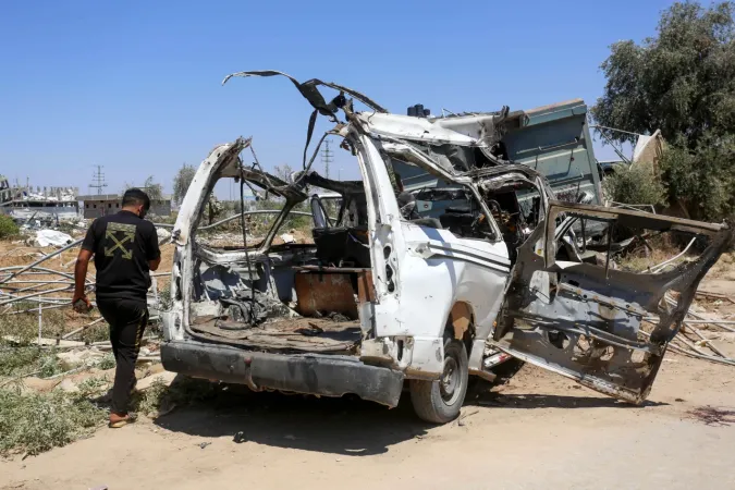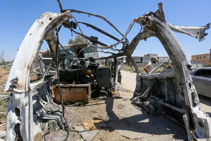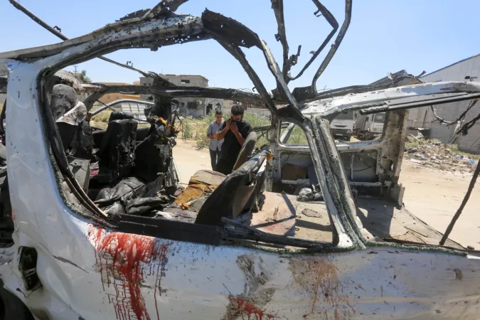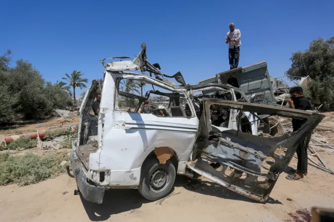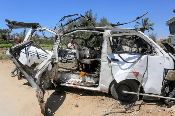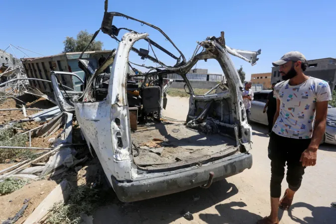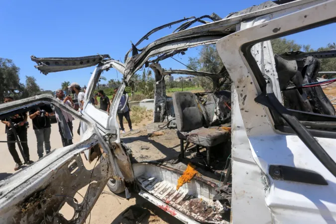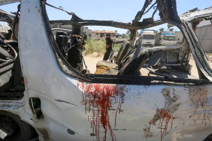 İsrail'in Gazze Şeridi'nin orta kesimindeki Ez-Zevayide beldesinde bir aracı hedef alması sonucu ölü ve yaralıların olduğu bildirildi. Bölgedeki Filistinliler, hurdaya dönen aracı inceledi.