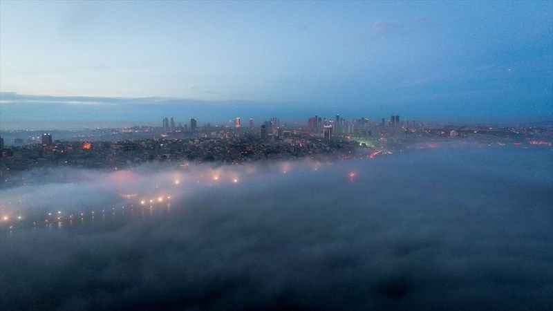 İstanbul'da dün gün boyu etkili olan sis, drone ile böyle görüntülendi.