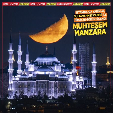 İstanbul'da yarım ay, Sultanahmet Camisi ile birlikte görüntülendi.