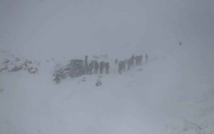 Bahçesaray ilçesinde çığ altında kalan minibüsteki iki kişiyi arama çalışmalarını yürüten ekiplerin üzerine çığ düştü.