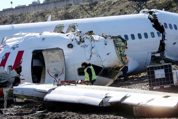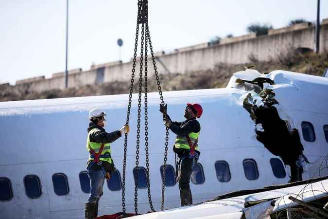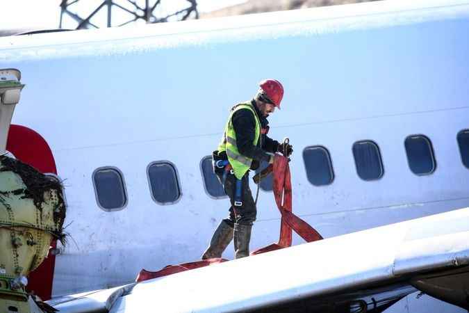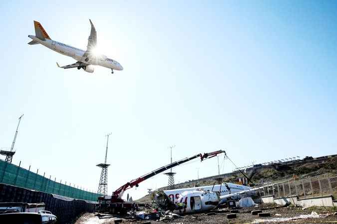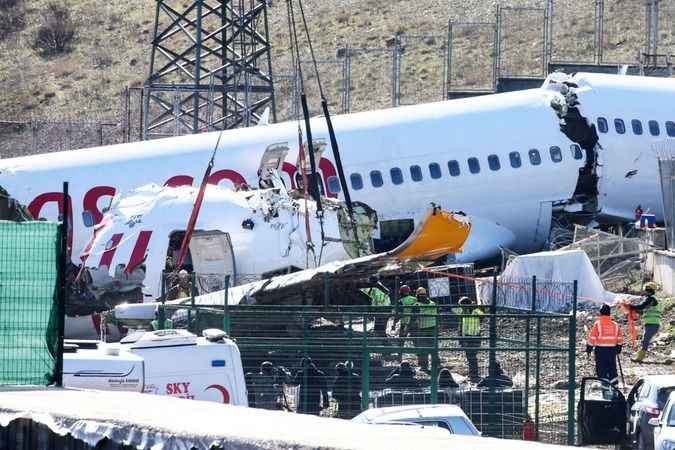 İstanbul Sabiha Gökçen Havalimanı'na iniş yaptıktan sonra pistten çıkarak kaza yapan uçağın enkazının parçalara ayrılıp kaldırılması çalışmaları 3. gününde devam ediyor.