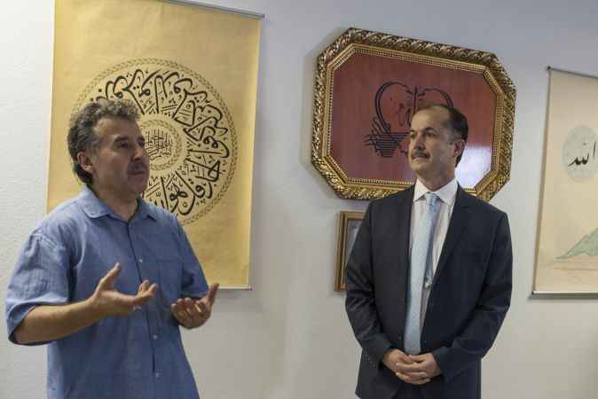 Açılışın ardından merkezi gezen heyet, Türkçe sınıfını ve açılan sanat sergisini ziyaret etti.