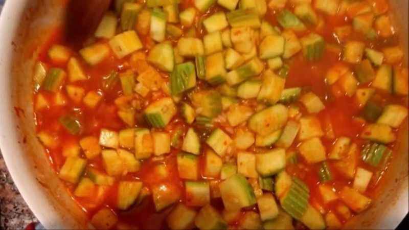 Tencerenin kapağını kapatın ve kısık ateşte kabaklar yumuşayana kadar pişirin.