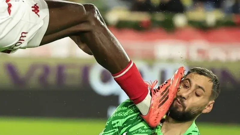 Monaco-PSG maçında Wilfried Singo'nun Donnarumma'ya yaptığı sert müdahale sonrası yıldız kalecinin suratı adeta parçalandı. Acil müdahaleye alınan yıldız isme 10 dikiş atıldı.