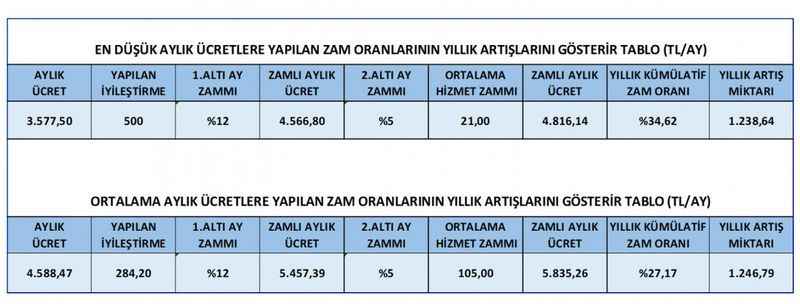 İlk 6 ay için 12, ikinci 6 ay için yüzde 5 zam artı enflasyon zammı yapıldı.